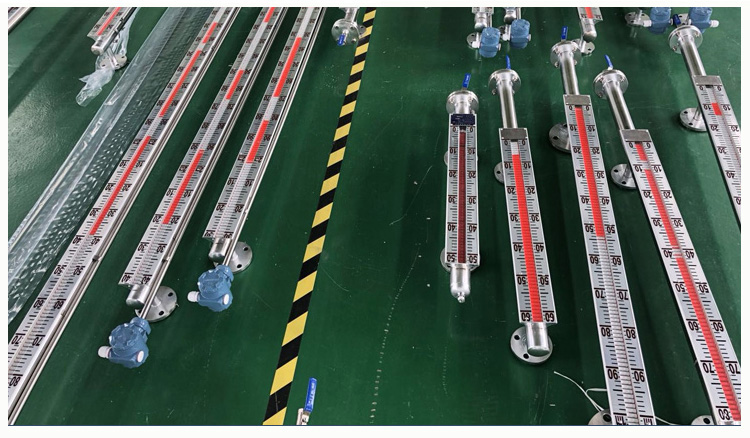 3.液位計安裝完畢后,需要用磁鋼進(jìn)行校正對翻柱導(dǎo)引一次使零位以下顯示紅色,零位以上顯示白色。
